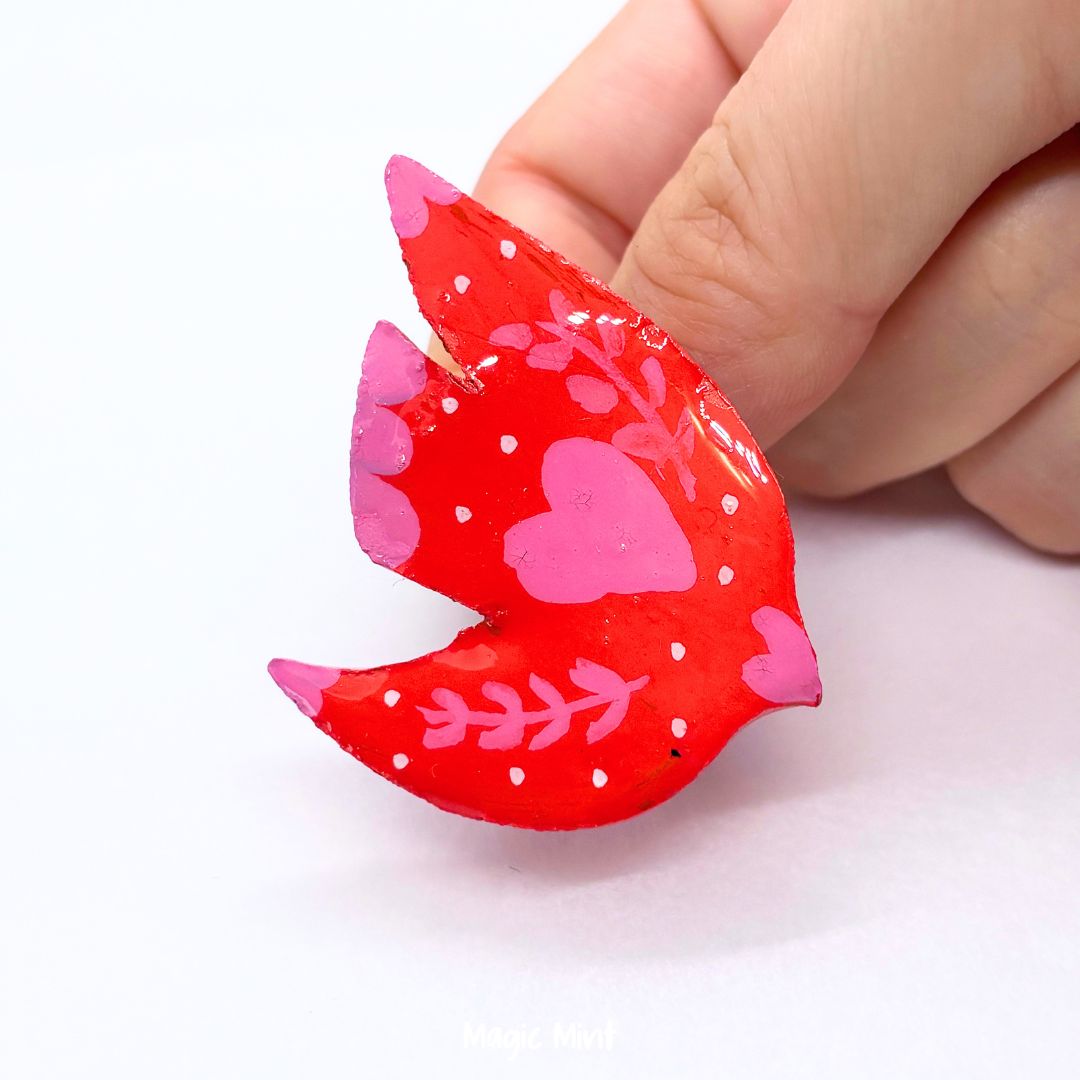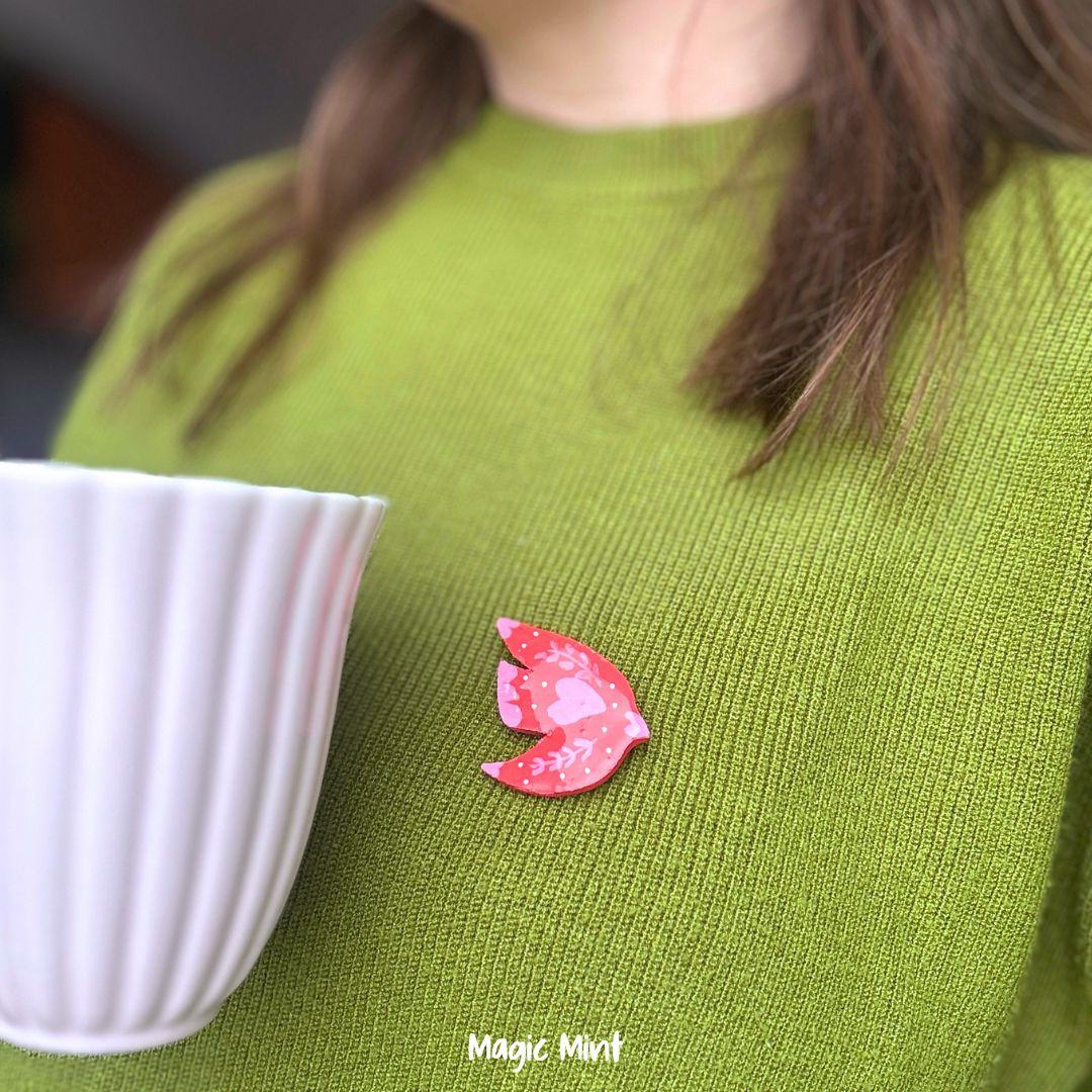 Broșă turturică roz cu roșu
