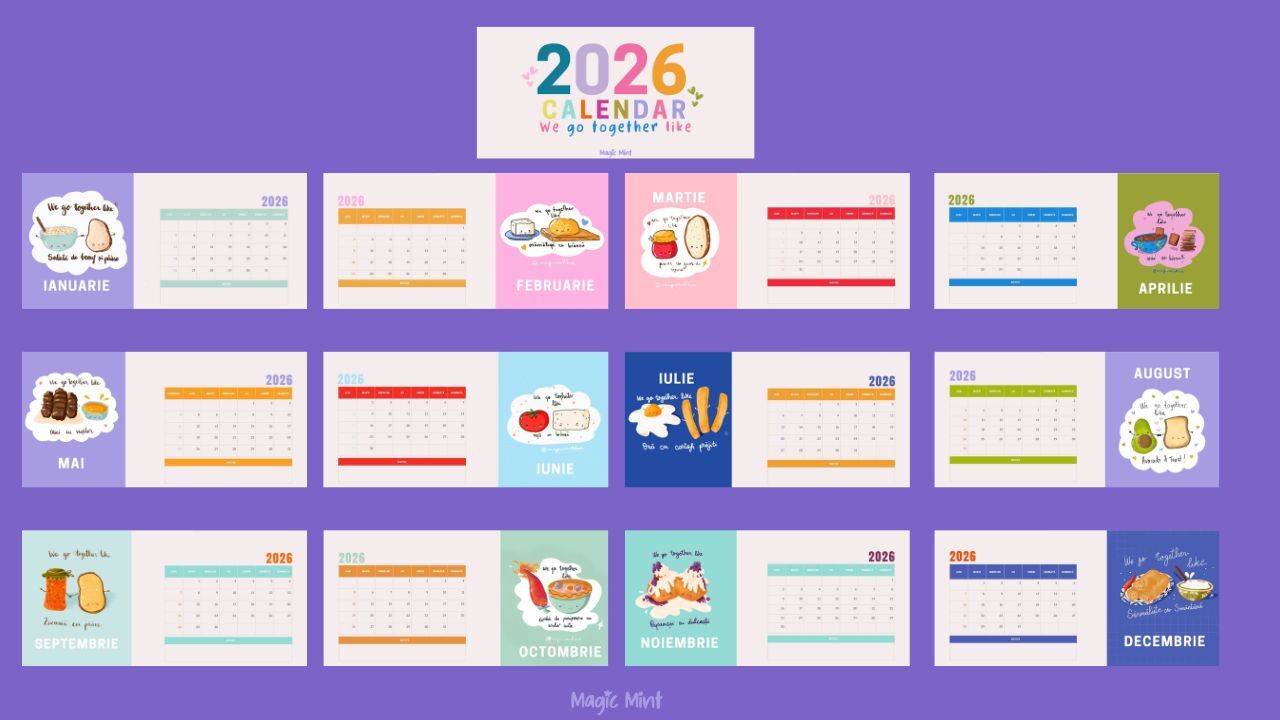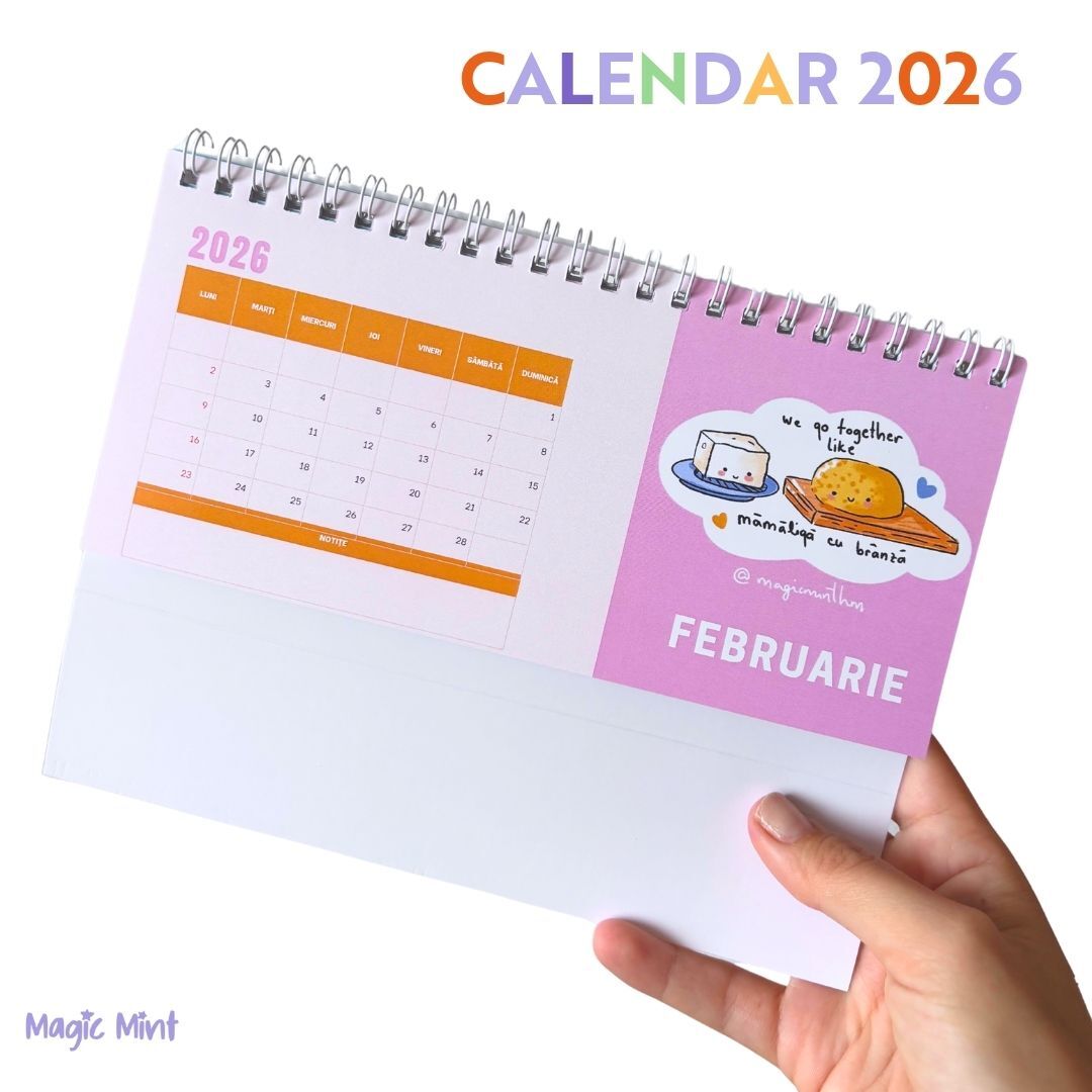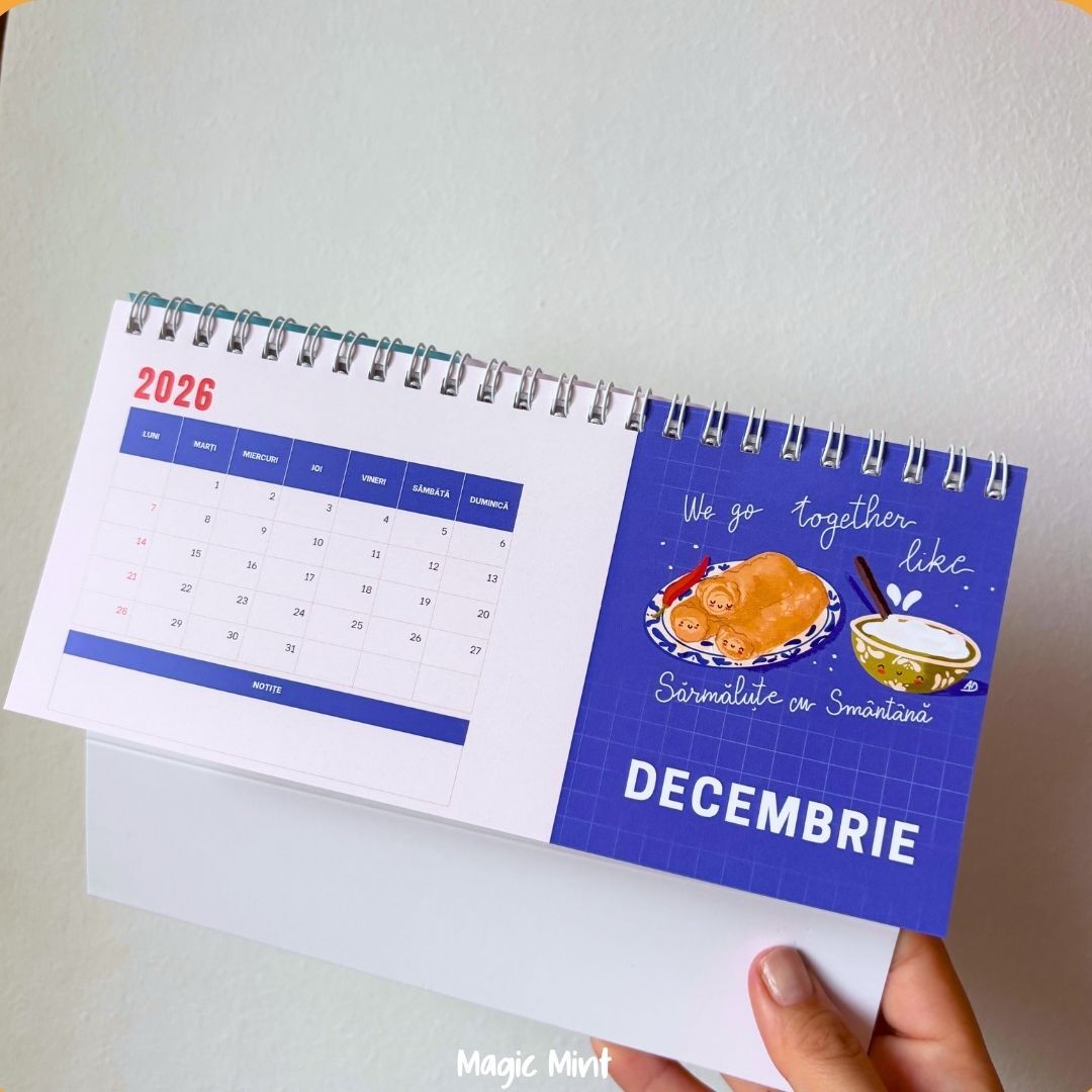 Calendar de birou 2026 We go together like We go together like calendar: luni, marti…miercuri? Oare ce zi e azi? Cred ca tuturor ni se intampla sa uitam uneori in ce zi suntem. Dupa succesul calendarului de birou de anul trecut anul asta avem un design nou, inspirat si impreuna cu deja consacratele ilustratii…