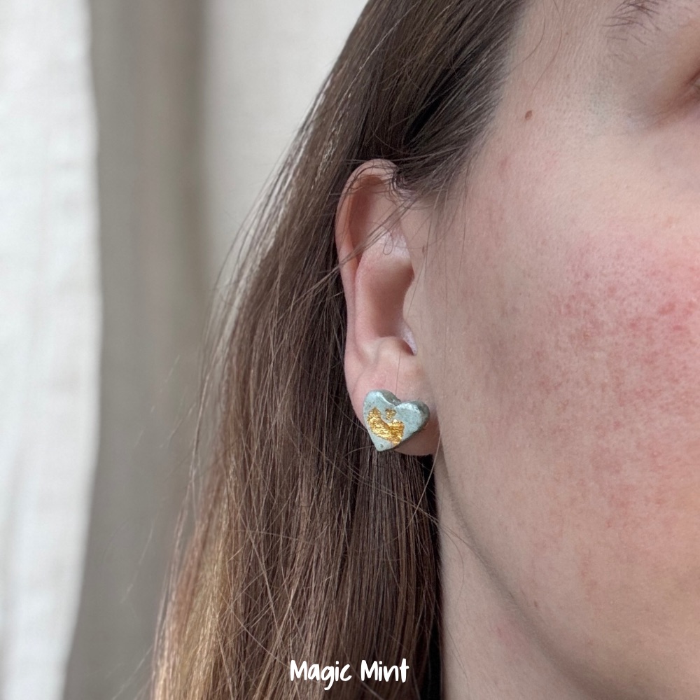 Când alegi o pereche de cerceu turcoaz inimă cu foiță de aur, in primul rand alegi un produs unic, iar in al2-lea rand sustii un business local. Sunt lucrati integral de mana din lut cu uscare la aer, pictati cu drag iar apoi pe suprafața lor este adăugat un strat de rășină. Nu doar că îi conferă un luciu intens însă îl și face mai durabil.