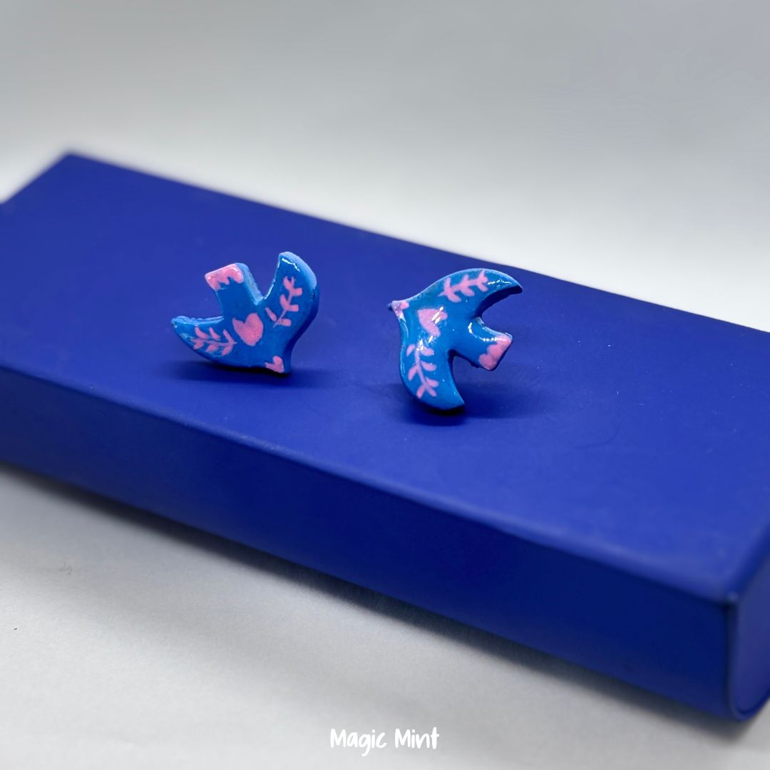 Cercei turturele albastre din lut: Accesoriul perfect pentru o ținută unică!