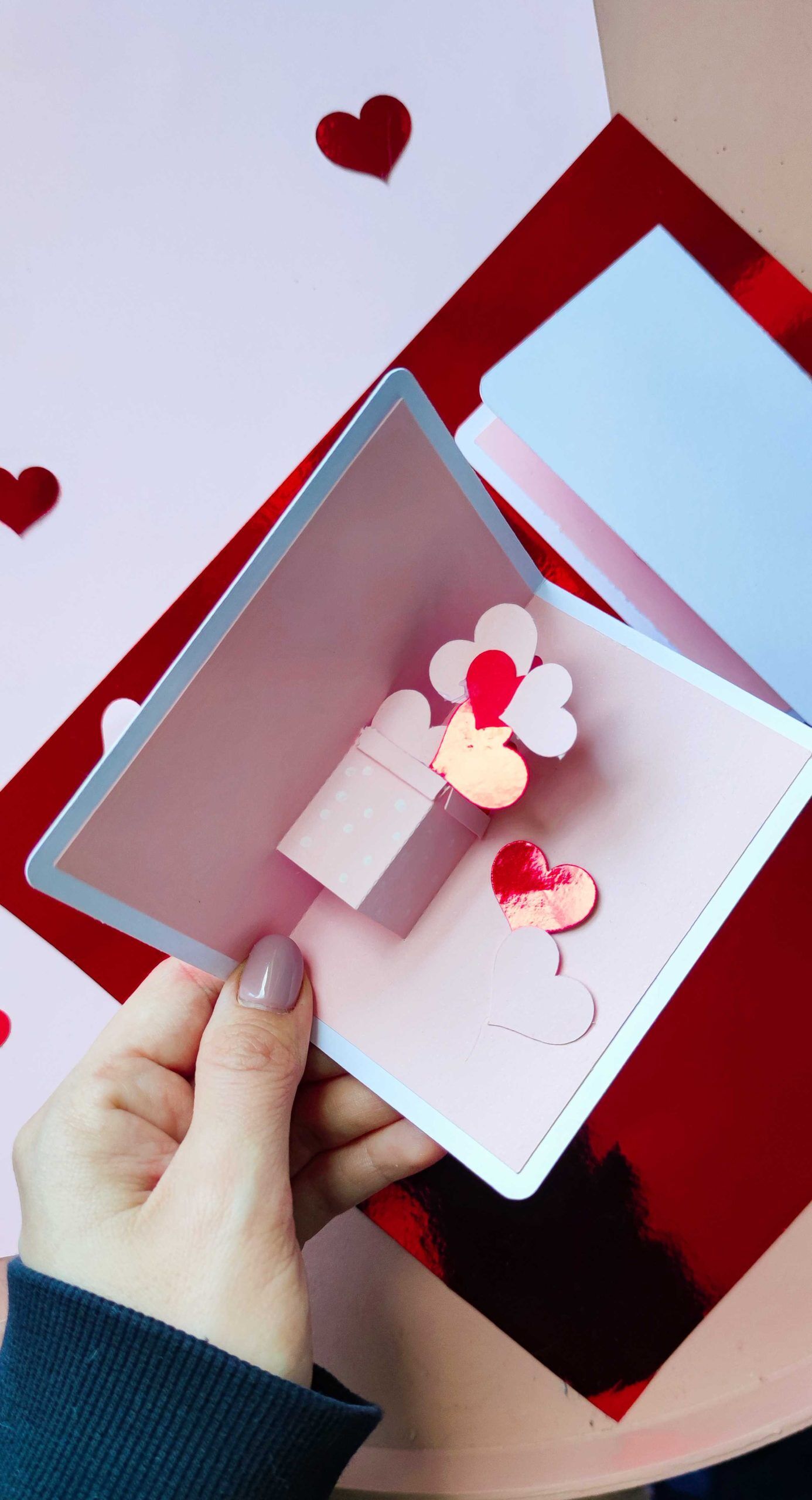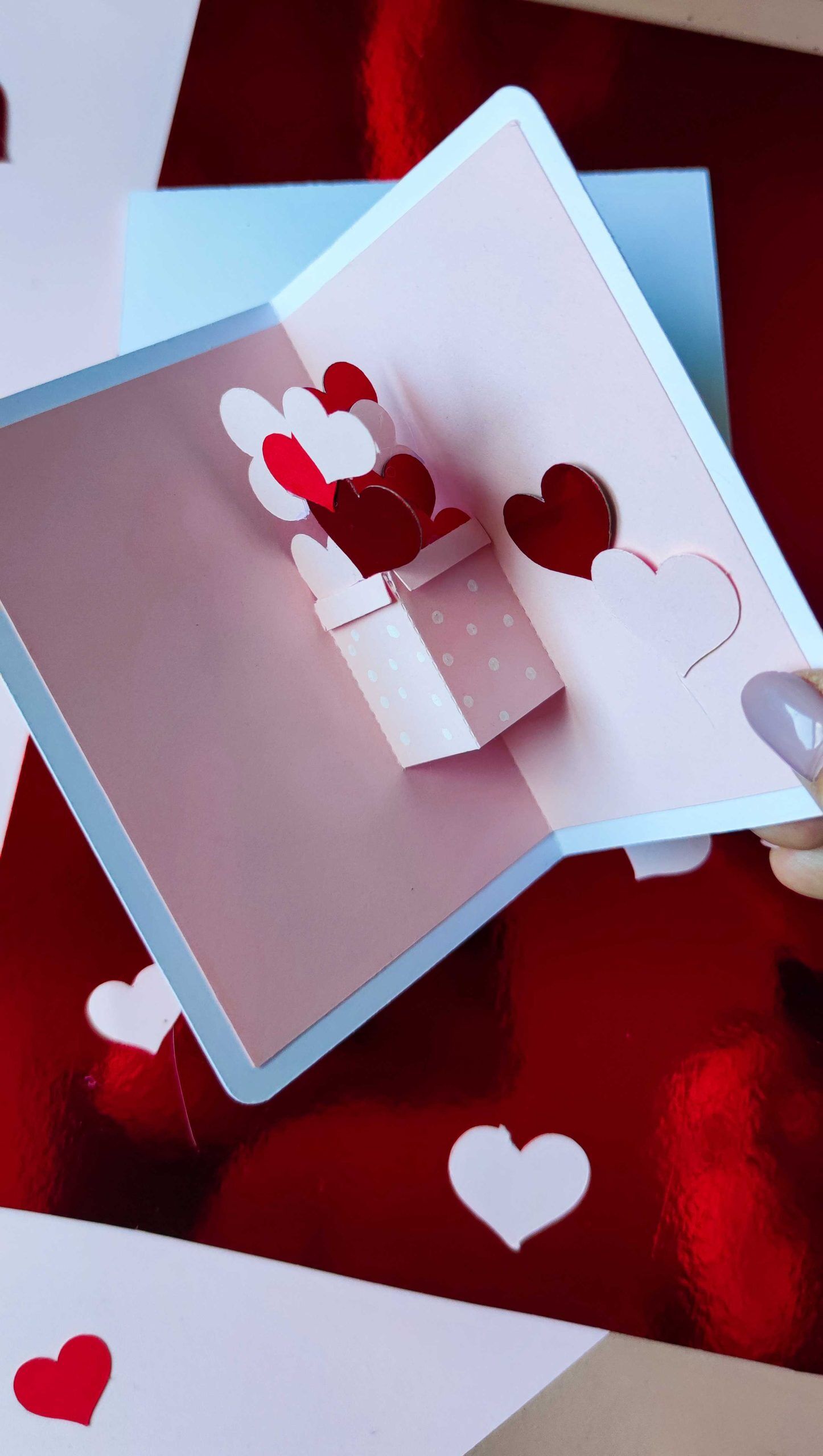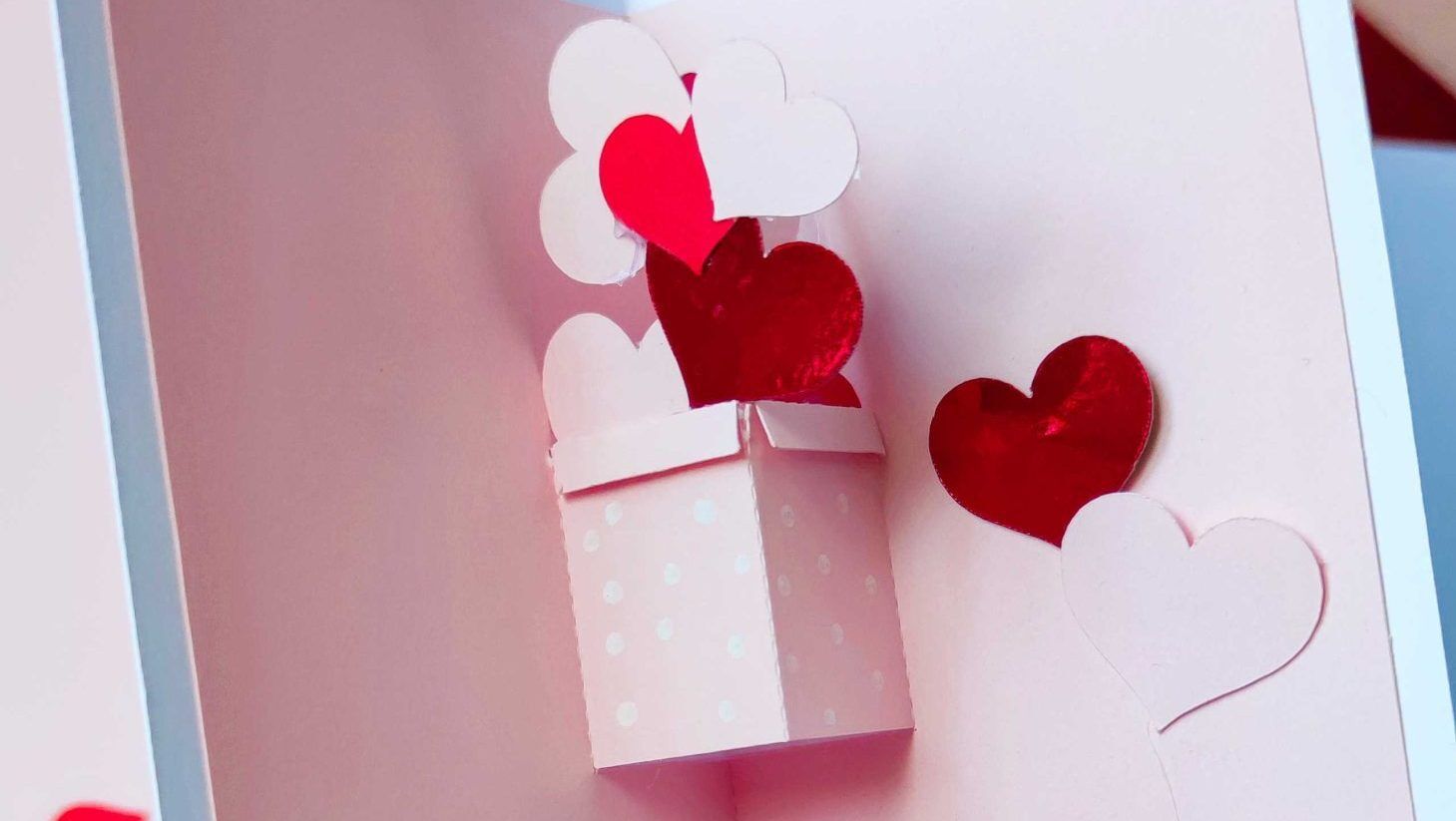 Iubirea se sărbătorește în fiecare zi și nu e nevoie de ceva foarte extravagant că să o faci. Ce zici de o felicitare pop-up cu inimioare