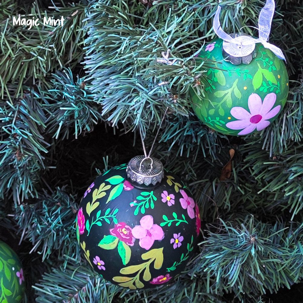 Puneศi mรขna pe aceste ornamente de Crฤciun Globuri florale de Crฤciun pictate manual acum ศi lฤsaศi sฤ se desfฤศoare vremurile bune cu cele mai รฎncรขntฤtoare decoraศiuni din oraศ! ๐๐