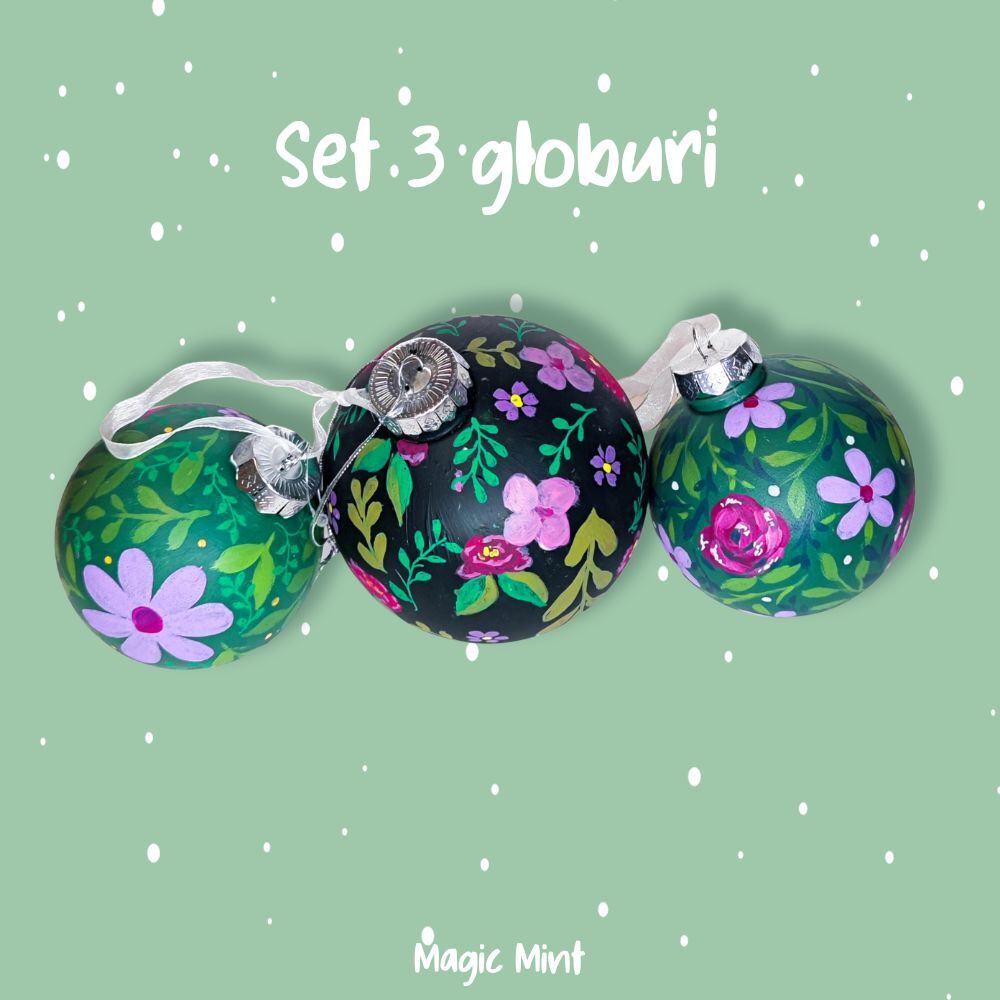 Impodobeste bradul cu setul nostru super adorabil de 3 globuri pictate manual cu motiv floral de Crฤciun ! ๐บ๐ Aceste drฤgฤlฤศenii sunt aici pentru a presฤra puศinฤ magie floralฤ in bradul tฤu ศi pentru a-ศi transforma decorul de sฤrbฤtori รฎntr-o fiesta festivฤ!