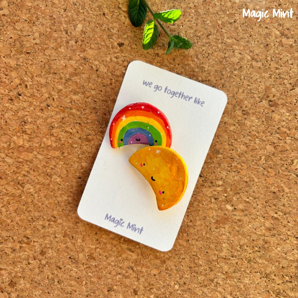 Dăm start la colecția super colorată pin mărțișor. Ne-am dorit foarte mult să continuăm colecția de ilustrații ,,We go together like” și sub o formă mai fun, gata de purtat. Așa s-au născut pin-urile mărțișor din lut, cu uscare la aer.