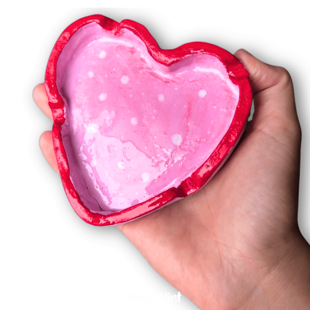 Scrumieră handmade din lut în formă de inimă _________________________________________________________________________________ Valentine’s day poate să fie în fiecare zi! Scrumieră handmade din lut în formă de inimă nu numai că e foarte cute, dar poate fi și un cadou simpatic. Și, cel mai fain e că poate fi folosită atât ca scrumieră, pentru fumători, dar și că suport pentru bijuterii sau palo santo. Ai: 1 scrumiera; 1 suport bijuterii ; 1 suport de palo santo Scrumiera este realizată din lut, pictata manual si acoperita cu un strat protector…