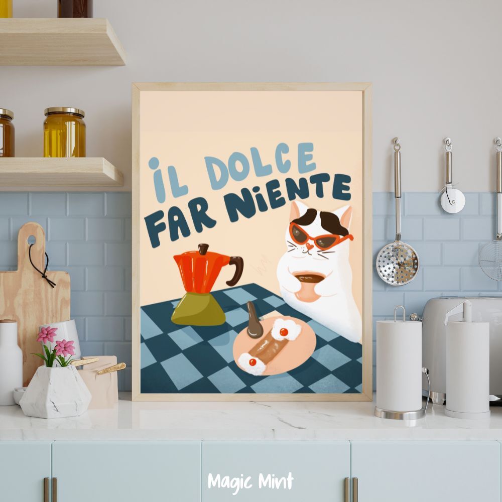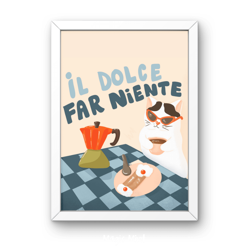 Oferă-ți un cadou inspirat de meleagurile siciliene și fugi înapoi în vacanță, în fiecare dimineata.  Nimic nu-i mai bun ca o cafea calda si fresh, dimineața devreme. În funcție de câtă cafea ai nevoie să te trezești,  alege un tablou pentru bucătărie cu pisica siciliană de dimensiunea A4 sau A3.
